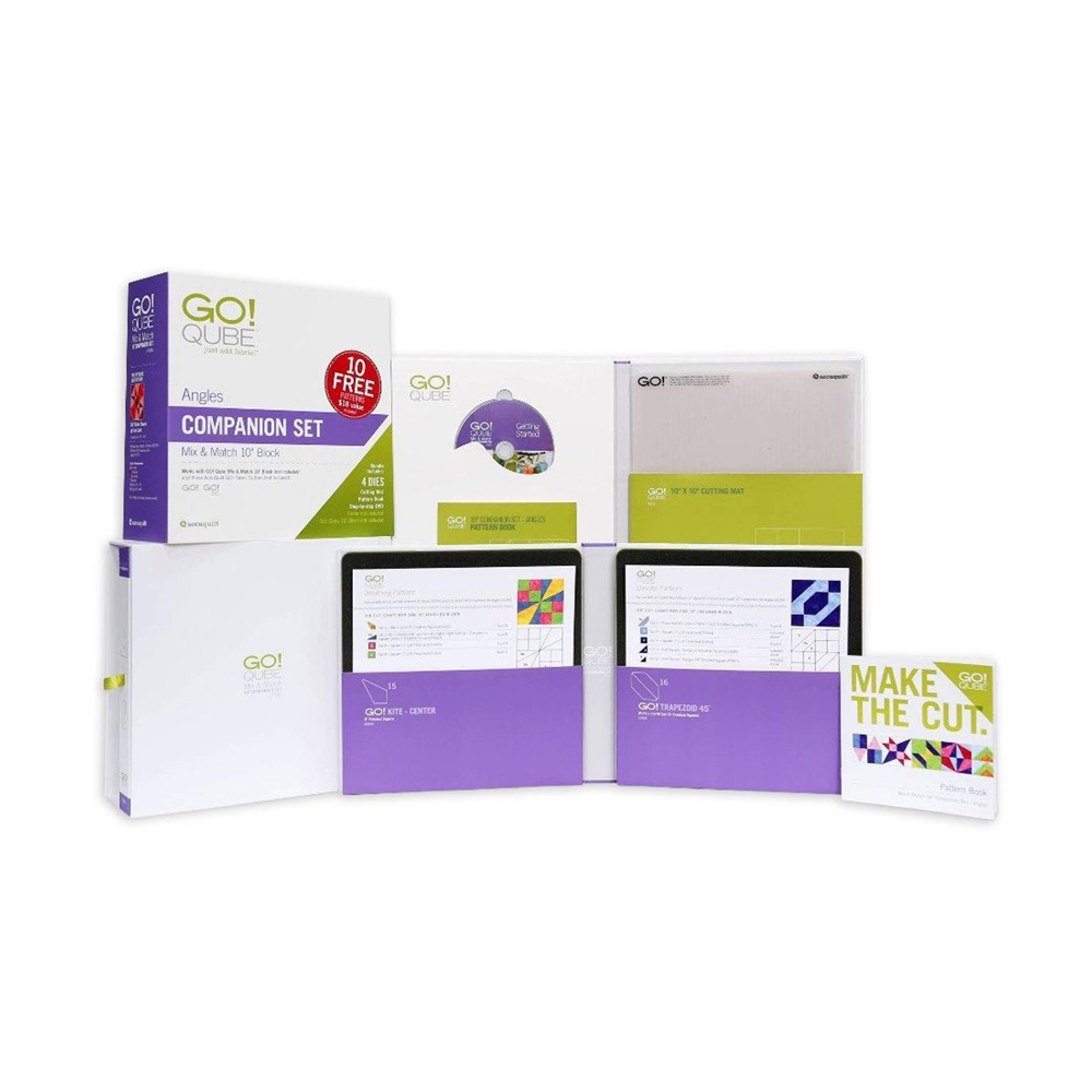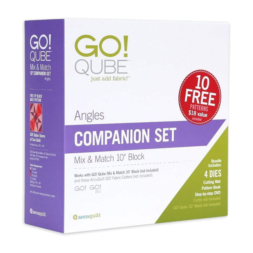 - GO! Qube 10" Companion Set-Angles expands the number of quilt blocks the GO! Qube Mix & Match 10" Block (55797) can make from 72 to 216 or more when combined with GO! Qube 10" Companion Set-Corners (55798).