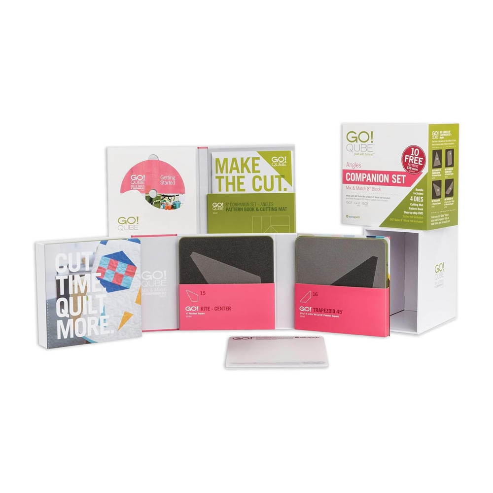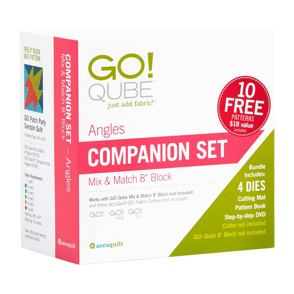 The GO! Qube 8" Companion Set - Angles includes four GO! shapes, a cutting mat, an instructional DVD, PLUS a FREE 24-page pattern booklet and an innovative storage system.